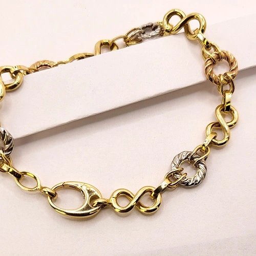 | изискана мека златна гривна от 14 к злато с акцент златни геометрични | |
